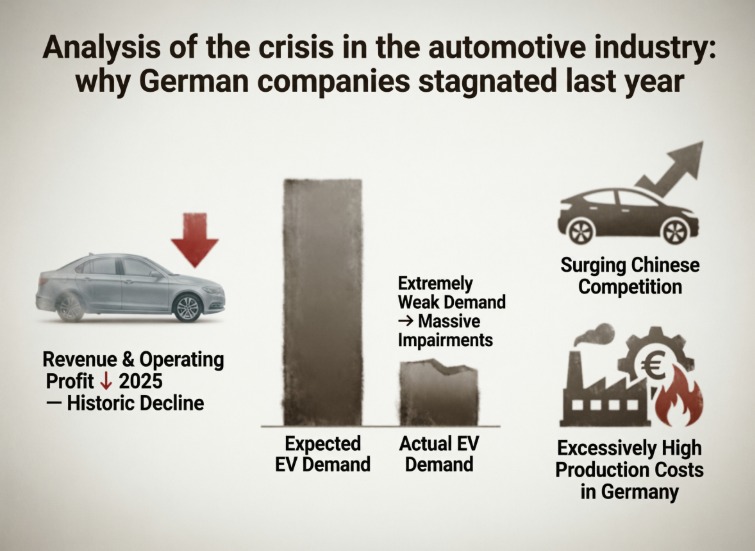 • Η γερμανική αυτοκινητοβιομηχανία βιώνει μια ιστορική πτώση εσόδων και λειτουργικών κερδών για το 2025, χάνοντας σημαντικό έδαφος.