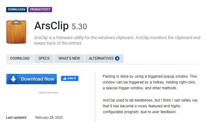 Πρόκειται για μια απλή εφαρμογή που αναβαθμίζει το clipboard των Windows, χαρίζοντάς του τη δυνατότητα να φιλοξενεί πολλαπλά τμήματα δεδομένων. Κάθε φορά που ο χρήστης πατά το συνδυασμό CTRL+C, τα δεδομένα αντιγράφονται στο clipboard, αλλά ως διαφορετικές καταχωρήσεις. Από εκεί και έπειτα, ο χρήστης μπορεί να πατήσει το συνδυασμό CTRL+V, όπως θα έκανε συνήθως, για να επικολληθούν τα τελευταία που αντέγραψε στο clipboard στην ενεργή εφαρμογή ή να χρησιμοποιήσει το συνδυασμό που αντιστοιχεί στο ArsClip για να επιλέξει ποιο θέλει να επικολλήσει ανάμεσα σε όλα όσα είχε αντιγράψει νωρίτερα!