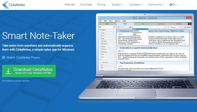 Ευτυχώς, υπάρχουν και προτάσεις όπως το CintaNotes. Το πρόγραμμα αυτό δεν οργανώνει συλλογές φωτογραφιών και βίντεο, δεν κρατά πλούσιες multimedia σημειώσεις και δεν αναγνωρίζει τι λέμε σε ένα μικρόφωνο ή τι γράφουμε με ένα πενάκι/tablet. Δεν προσπαθεί να αποδείξει την ευφυΐα των δημιουργών του, ούτε να προσφέρει άπειρες επιλογές. Απλώς, μετά την εγκατάστασή του, κρύβεται στο παρασκήνιο και περιμένει να του στείλουμε σημειώσεις κειμένου, και μόνο γραπτού κειμένου.