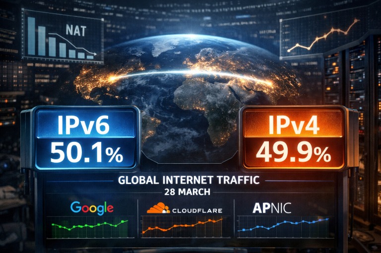 Το IPv6 μετέφερε τη μισή παγκόσμια κίνηση του διαδικτύου σε μία μόνο ημέρα τον Μάρτιο, σύμφωνα με τη Google. Το εύρημα είναι εντυπωσιακό, αλλά χρειάζεται προσεκτική ανάγνωση. Τα δεδομένα δείχνουν τάση, όχι απαραίτητα οριστική αλλαγή εποχής.