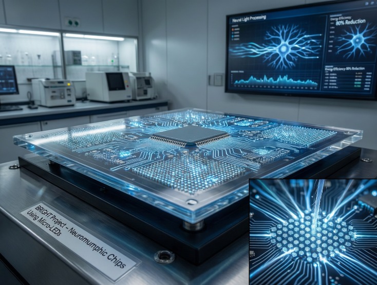 - Το project BRIGHT αναπτύσσει νευρομορφικά chips που χρησιμοποιούν micro-LEDs αντί για τρανζίστορ, μιμούμενα τη λειτουργία του εγκεφάλου.