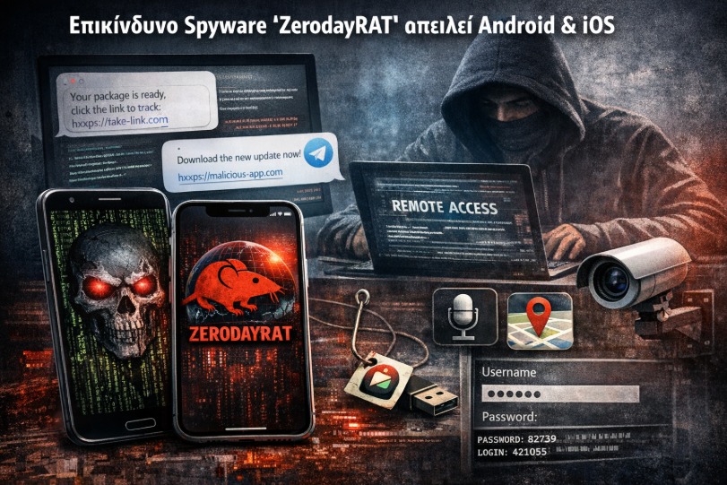 • Το νέο spyware ZerodayRAT στοχεύει συσκευές Android και iOS, επιτρέποντας πλήρη απομακρυσμένη πρόσβαση μέσω ενός απλού browser.