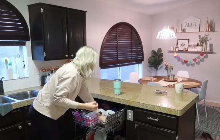Μία φορά την εβδομάδα καθαρίζουμε το πάτωμα και τον απορροφητήρα, μία φορά το μήνα το φούρνο (με ειδικά προϊόντα) και το ψυγείο (με νερό και ξύδι για αντιμικροβιακή δράση), μία φορά στους τρεις μήνες την κατάψυξη και τα ντουλάπια και μία φορά στους πέντε μ’ έξι μήνες αλλάζουμε το φίλτρο του απορροφητήρα.